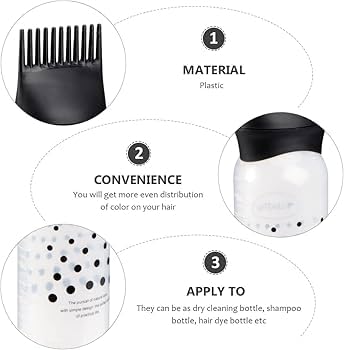 • سهل الاستخدام: ببساطة املأ الزجاجة بلون شعر ممزوج مسبقًا واستخدم مقبض المضخة لتوزيع المنتج من خلال رأس المشط.