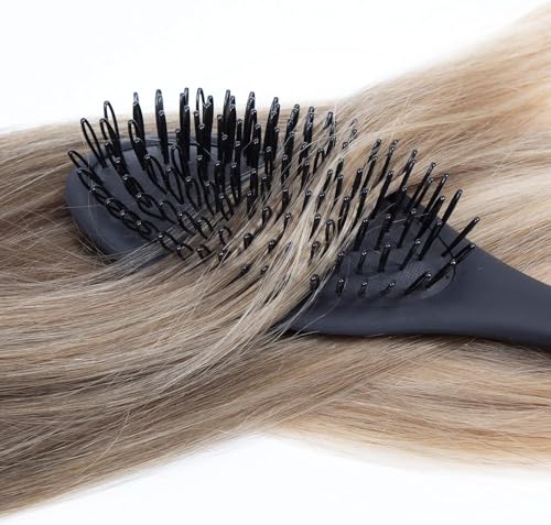 Generic - فرشاة لوصلات الشعر، فرشاة باروكة حلقية بشعيرات ناعمة، فرشاة ومشط بوسادة مطاطية لوصلات الشعر مع فك تشابك شعر الباروكة، لون أسود