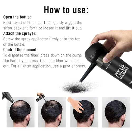 - تعليمات سهلة الاتباع: يعد استخدام أداة تطبيق ألياف الشعر من فيكسي سهلًا للغاية. ما عليك سوى تثبيتها على زجاجة ألياف الشعر، ثم الضغط على مضخة الرذاذ، ومشاهدة تحول شعرك. أكمل المظهر باستخدام مثبت الشعر لتثبيت طويل الأمد.