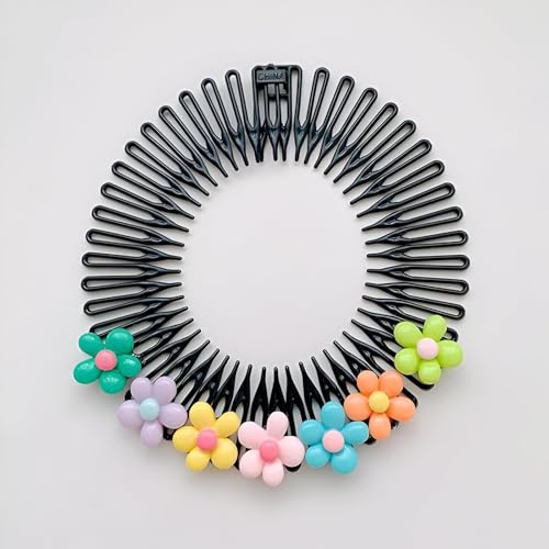Generic - طوق شعر بتصميم مشط لطيف بتصميم كرتوني للنساء والفتيات، ربطة شعر مرنة بتصميم دائري ملون لمظهر أنيق (1 قطعة، لون عشوائي)
