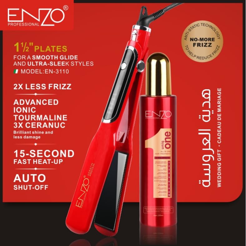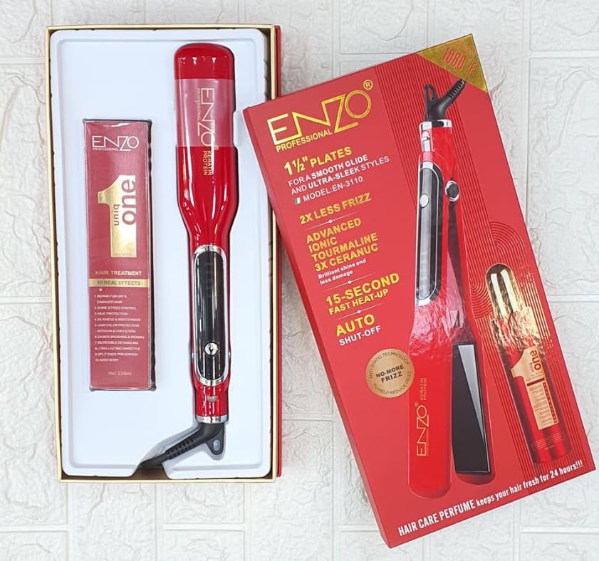 Generic - مكواه شعر 1080F - انزو + سيرم، أحمر