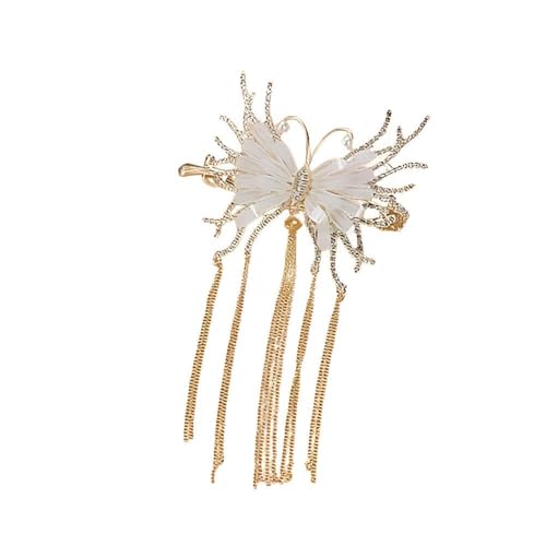 - يتميز هذا المشبك بتصميم استثنائي، ويظهر شكل فراشة فريد مزين بكريستالات لامعة وشراشيب مرحة، مما يضيف لمسة من السحر والأناقة إلى أي تصفيفة شعر. سواء كنت ترتدي ملابس لمناسبة خاصة أو تعزز مظهرك اليومي، فمن المؤكد أن هذا المشبك سيلفت الأنظار.