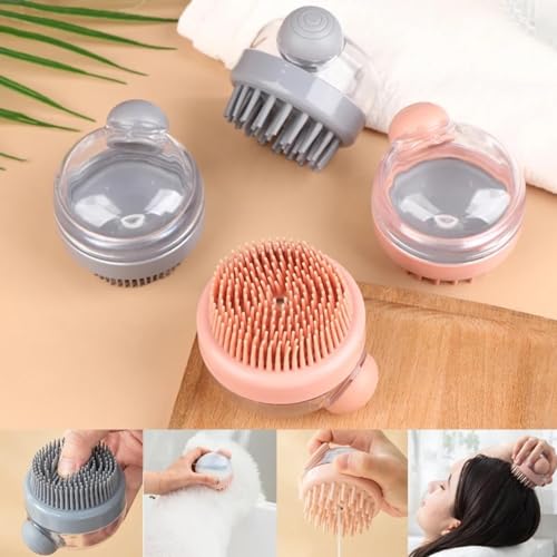 Generic - فرشاة حمام لتدليك فروة الرأس والاستحمام للتنظيف بشعيرات السيليكون للرجال والنساء والجسم مع موزع صابون سائل وشامبو - قطعة واحدة