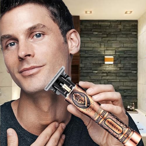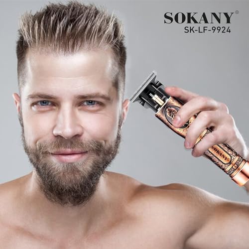 Generic - ماكينة حلاقة الشعر الاحترافية من سوكاني، لاسلكية بشفرة على شكل حرف T الستيل الكربوني، وقت تشغيل 80 دقيقة، جودة صالونات التجميل في المنزل، SK-LF-9924 (ذهبي وردي)