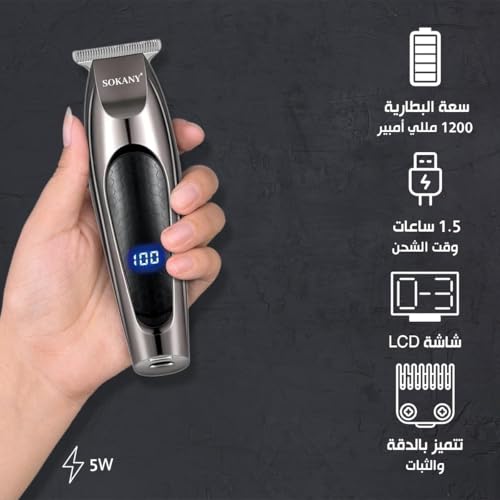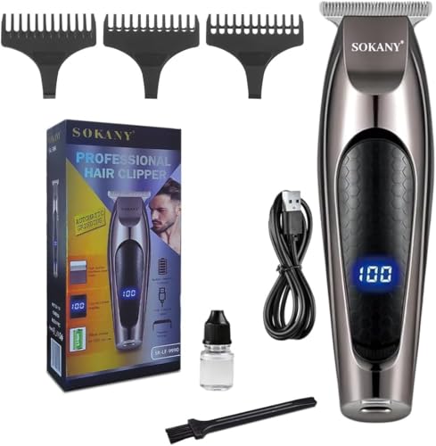 Sokany - ماكينة حلاقة وقص الشعر - ماكينة حلاقة احترافية لاسلكية مع شاشة LED، شفرة من الستانلس ستيل مع 3 امشاط، وقت تشغيل 120 دقيقة، قص شعر بجودة صالونات التجميل في المنزل، SK-LF-9990