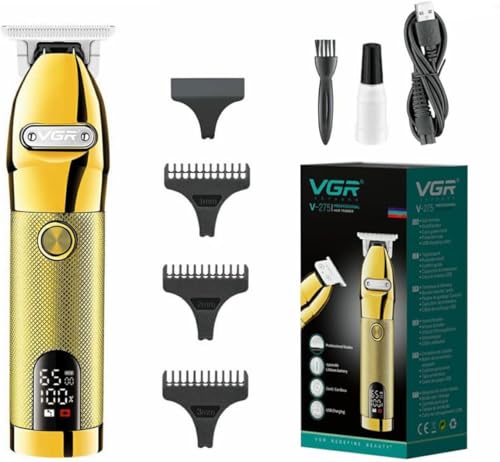 Generic - ماكينة حلاقة وقص الشعر - مجموعة احترافية لقص الشعر وتشذيبه مع شفرات قابلة للتعديل لتشذيب دقيق (V-275 ذهبي)
