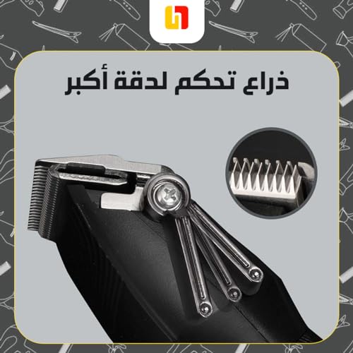 - ماكينة حلاقة شاملة الكل في واحد: ماكينة حلاقة وقص الشعر الاحترافية مناسبة للاستخدام المنزلي ومصففي الشعر المحترفين، حيث توفر أداة موثوقة وفعالة لتحقيق قص وتصفيف الشعر المثالي في كل مرة.