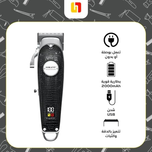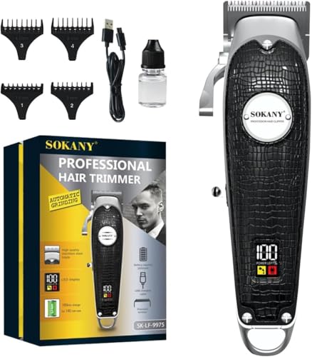 Sokany - ماكينة حلاقة احترافية للشعر واللحية للرجال SK-LF-9975، بشفرات دقيقة وشاشة ال اي دي ومدة تشغيل بطارية طويلة، قابلة لإعادة الشحن للحلاقة المنزلية