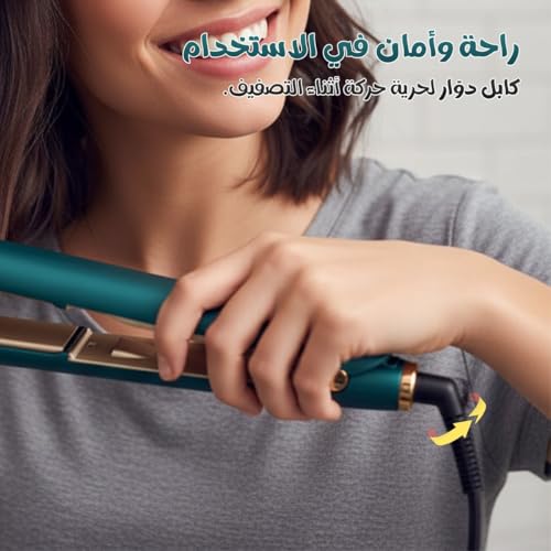 - سهل التعامل: يمنحك السلك الدوار 360° حرية اللف والدوران دون تشابك، مما يسهل الوصول إلى الخلف وتصفيف الإطلالات المجعدة والمفرودة.