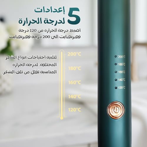 - 5 درجات حرارة دقيقة: اختاري الحرارة التي يحتاجها شعرك — منخفضة للخصلات الرفيعة، وأعلى للشعر الكثيف أو المجعد — لتصففي شعرك بثقة بتمريرات أقل ومخاطر أقل من إجهاد الحرارة.