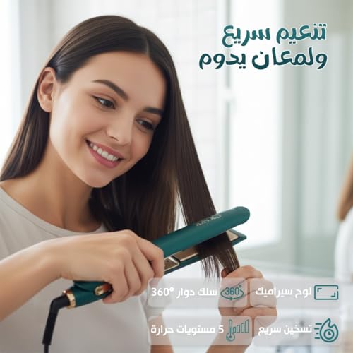 - شعر ناعم في وقت أقل: تسخن مكواة فرد الشعر المسطحة هذه ذات ألواح السيراميك إلى 200 درجة مئوية بسرعة، لذا تمررينها مرة واحدة وتنطلقين. تحكمي في التطاير قبل العمل أو المدرسة أو الخروج واحصلي على لمعان بجودة صالونات التجميل دون انتظار.
