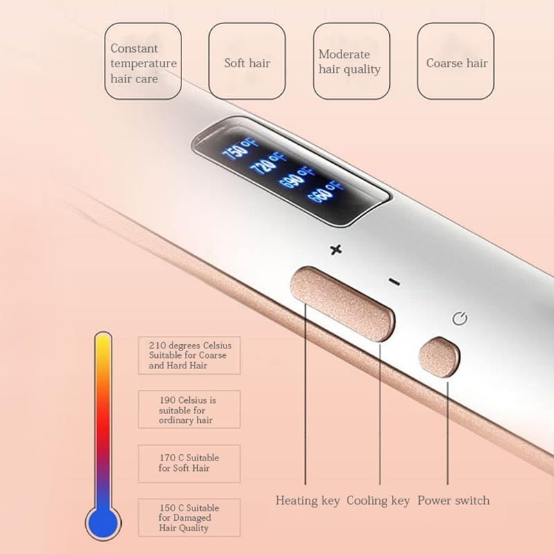 - حرارة متساوية وعوائق أقل: توزع ألواح السيراميك الحرارة بشكل موحد لتقليل البقع الساخنة وتساعد على انزلاق الشعر مع سحب أقل - رائعة لروتين العناية بالكيراتين أو الأرجان.