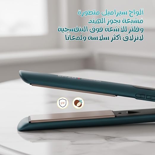 - نتائج بجودة صالونات التجميل في المنزل: استمتعي بلمعان ونعومة صالون التجميل الاحترافي مباشرة من طاولة الزينة الخاصة بك. تحمي ألواح السيراميك الغنية بزيت جوز الهند وفلاتر الأشعة فوق البنفسجية شعرك من الجفاف والتلف الناتج عن الحرارة مع تركه لامعًا.