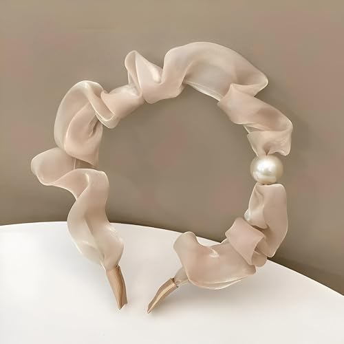 Generic - حزام شعر - انيق متعدد الالوان بتصميم دماغ برتقالي مع لمسة مطوية وتطريز لؤلؤي للنساء والفتيات