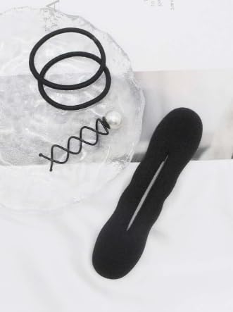 Generic - أدوات تصفيف الشعر مع أداة تنسيق كعكة الشعر وتوك للشعر واكسسوارات، باللون الأسود، طقم تصفيف الشعر بنفسك لجميع أنواع الشعر