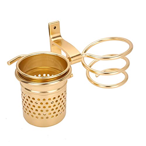 Generic - ادوات تصفيف شعر (حامل مجفف شعرمع حامل فرش لون دهبي يثبت على الحائط ومتين وموفر للمساحة)