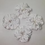 - ١) تصميم زهري: زهور بيضاء جميلة مصنوعة يدويًا بتصميم كلاسيكي أنيق مع مركز لؤلؤي براق