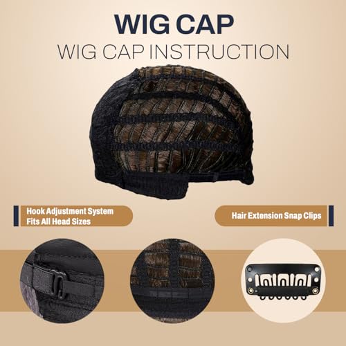 - ✅ ملاءمة آمنة قابلة للتعديل: تتضمن الباروكة حمالات قابلة للتعديل وخطافات قابلة للتعديل مدمجة داخل القبعة لتناسب أحجام الرؤوس المختلفة بشكل آمن، مما يمنع الانزلاق أثناء الحركة.