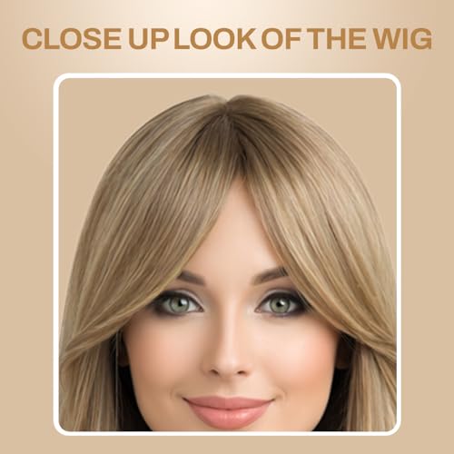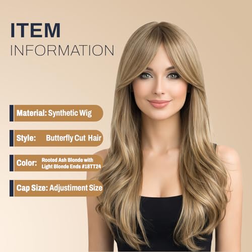Generic - باروكة بمظهر طبيعي على شكل فراشة، طول 60 سم، تصميم قبعة جيدة التهوية وقصة قابلة للتعديل، شعر صناعي، فرق ثابت غير قابل للتعديل، موديل - JW74 (جذور بلون رمادي وأطراف بلون أشقر فاتح، 18TT24)