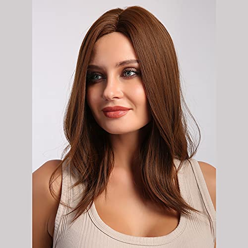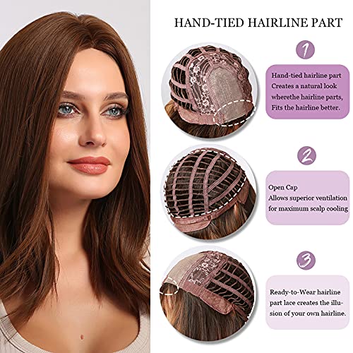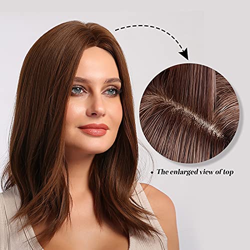 HAIRCUBE - باروكة شعر بني تسريحة بوب من هيركيوب، باروكات شعر قصير متموج للنساء بجزء في المنتصف، باروكة شعر صناعي مصنوع من الياف مقاومة للحرارة، باروكة مناسبة للارتداء اليومي للتمتع بمظهر طبيعي