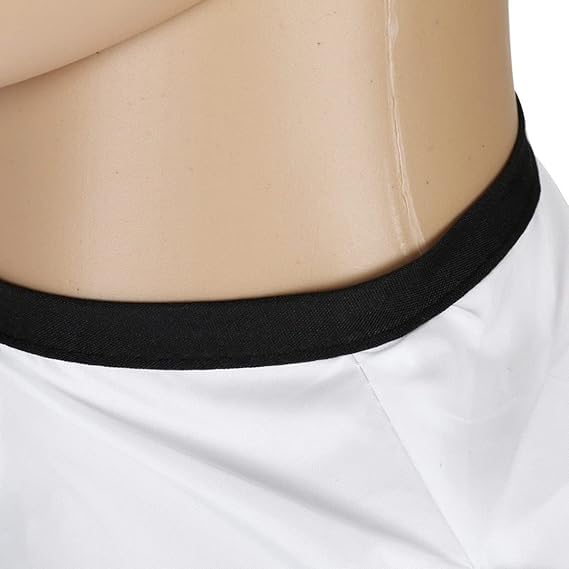 - سهل التعديل: من السهل تعديل رداء تصفيف الشعر في جزء الرقبة مما لن يسبب ضيق في التنفس وبسبب تصميمه القابل للتعديل، فهو مناسب للأشخاص من مختلف الأنواع مثل المراهقين والبالغين، رداء الحلاقة المظلة خفيف الوزن لذا بعد ارتدائه لفترة طويلة لن تشعر بالكثير من العبء. ملاحظة: تم تصميم الجزء الموجود على الرقبة بشريط لاصق فيلكرو لا يتناسب بشكل جيد مع الرقبة الصغيرة أكثر مناسبة لحجم الرقبة مناسبة لحجم الرقبة للبالغين