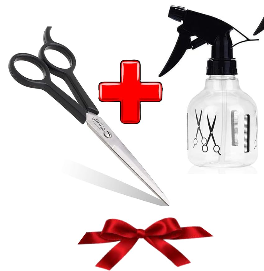 Generic - مقص تصفيف الشعر مع خطاف - مقص حلاقة مضاد للصدا - مقص قص الشعر لمصففي الشعر+ زجاجة بخاخة مياه شفافة بلاستيكية للشعر فارغة سعة 250 مل قابلة لإعادة الملء للتنظيف