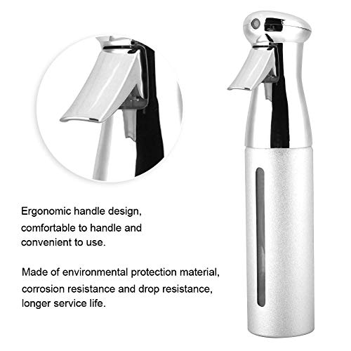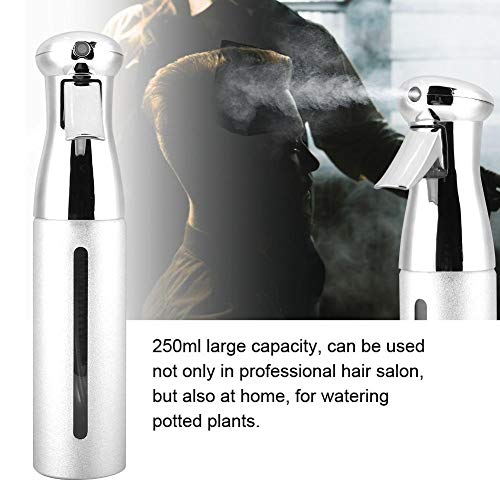 Brrnoo - بخاخة مياه لتصفيف الشعر، زجاجة فارغة لبخ المياه المستمر لترويض الشعر وللنباتات والحيوانات الاليفة وتصفيف الشعر صباحا - 250 مل (2#)، فضي