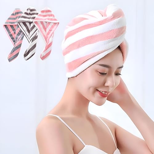 Generic - فوطة لتجفيف الشعر مصنوع من المايكروفايبر مع زر كبس، فائق النعومة، تقنية سريعة الجفاف، شكل مريح يناسب جميع مقاسات الرأس، للحمام والجيم والسفر، متوفر بألوان نابضة بالحياة.