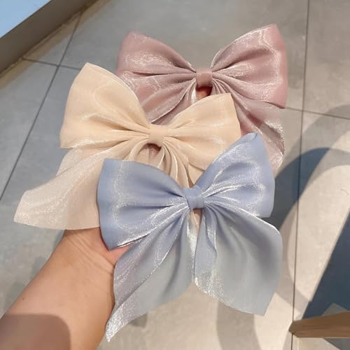 Generic - مشبك شعر بتصميم فيونكة أنيقة من الساتان للنساء، اكسسوارات شعر جذابة للحصول على تسريحة جذابة، مجموعة من 3 قطع