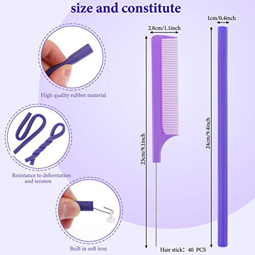 - عبوة قيمة: ستحصل على 40 قطعة من قضبان التجعيد المرنة باللون الأرجواني، تأتي مع 1 قطعة من مشط البنتيل الصلب، بإجمالي 41 قطعة. كمية كافية لتلبية متطلباتك اليومية، تركيبات لطيفة لك لتصنع شعرك المجعد المفضل، يمكنك أيضًا مشاركتها مع عائلتك وأصدقائك.