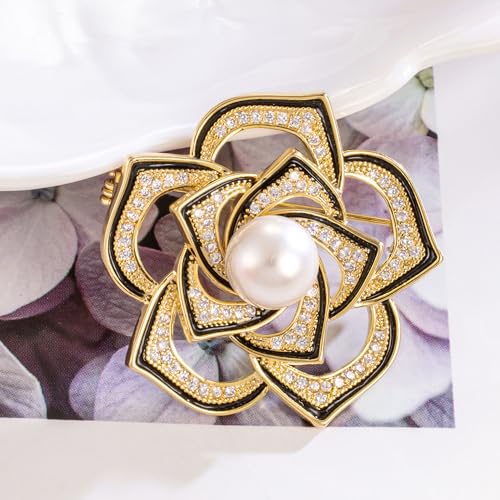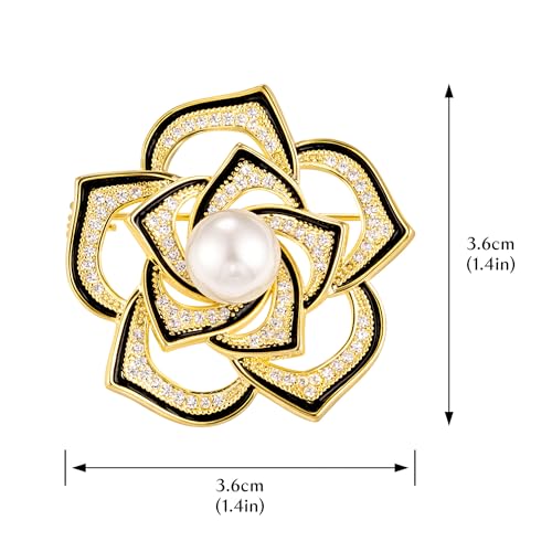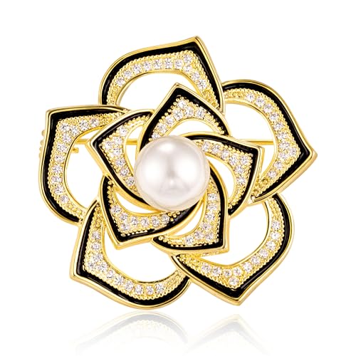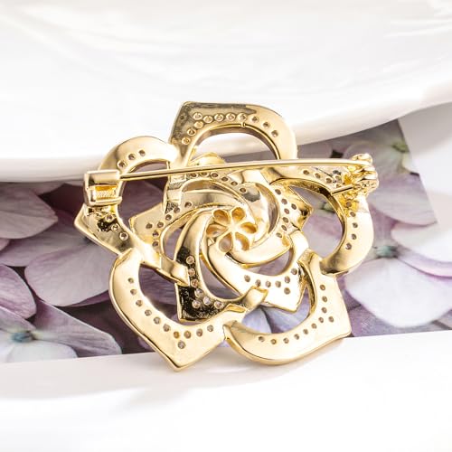 HAISWET - دبابيس بروش انيقة مرصعة بحجر الزركونيا المكعب للنساء من بارتي فلاور، لون ذهبي
