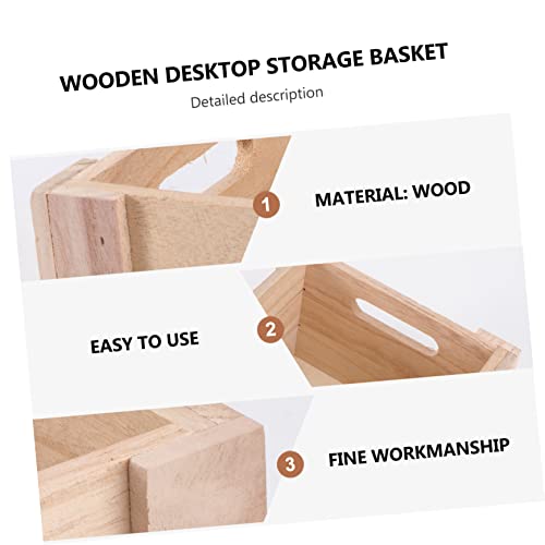 HAKIDZEL - منظم طاولة من هاكيدزل، سلة تخزين خشبية لسطح المكتب، سلة تخزين خشبية بتصميم ريفي لتخزين المكياج والادوات المكتبية للاطفال، قطعة واحدة