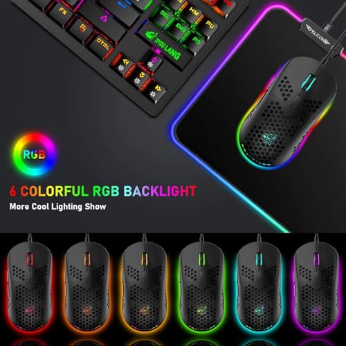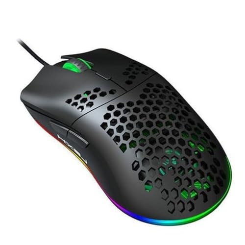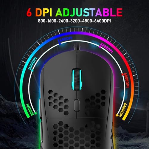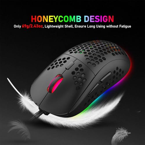 halamodo - ماوس العاب سلكي خفيف الوزن - هيكل مريح على شكل قرص العسل مع مستشعر بصري 6400 نقطة لكل انش و7 ازرار قابلة للبرمجة واضاءة خلفية RGB