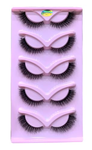Generic - رموش نصفية بشكل عين القطة، 5 أزواج/ رموش نصفية، رموش نصفية بمظهر طبيعي، نصف رموش، رموش بزاوية، لون وردي، SHAPE-PY231C