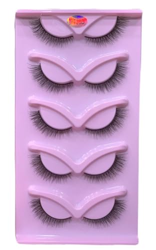 Generic - رموش نصفية بشكل عين القطة، 5 أزواج/ رموش نصفية/ رموش نصفية بمظهر طبيعي/ نصف رموش/ رموش بزاوية، لون وردي، SHAPE-PY25C