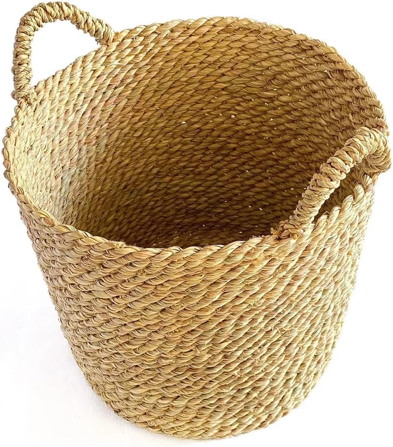 Generic - سلة أكواب منسوجة يدويا من الأعشاب البحرية بمقابض من هالفا (طول) ارتفاع 30 سم × عرض 28 سم