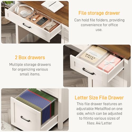 Halitaa - مكتب تنفيذي فارم هاوس 47 انش من هاليتا، مكتب كمبيوتر مع درج ملفات ومحطة شحن، محطة عمل للدراسة والمكتب المنزلي، ابيض فريد.