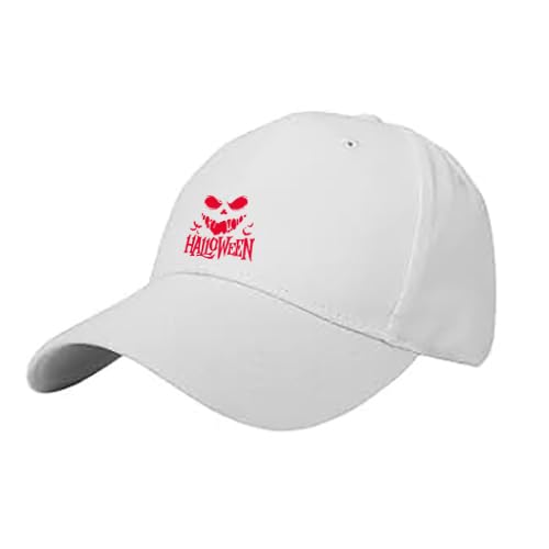Generic - قبعة بيسبول بشعار هالوين بمقاس قابل للتعديل خفيفة الوزن مصنوعة مزيج من القطن مناسبة للرياضات الخارجية، أبيض مع شعار أحمر