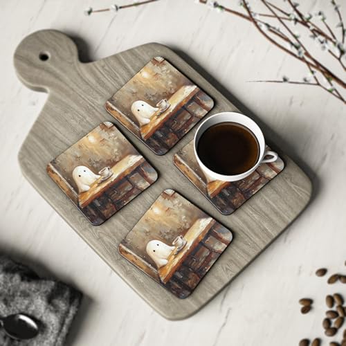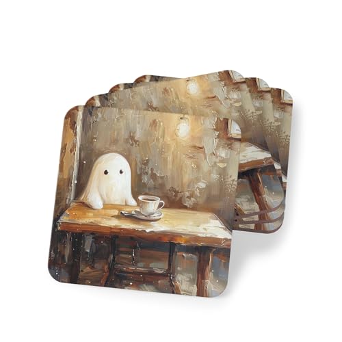 Generic - قواعد أكواب قهوة مطاطية مضادة للانزلاق بتصميم شبح لطيف للهالوين بنمط فن الامباستو لديكور الطاولة والمكتب، مجموعة من 4 قطع