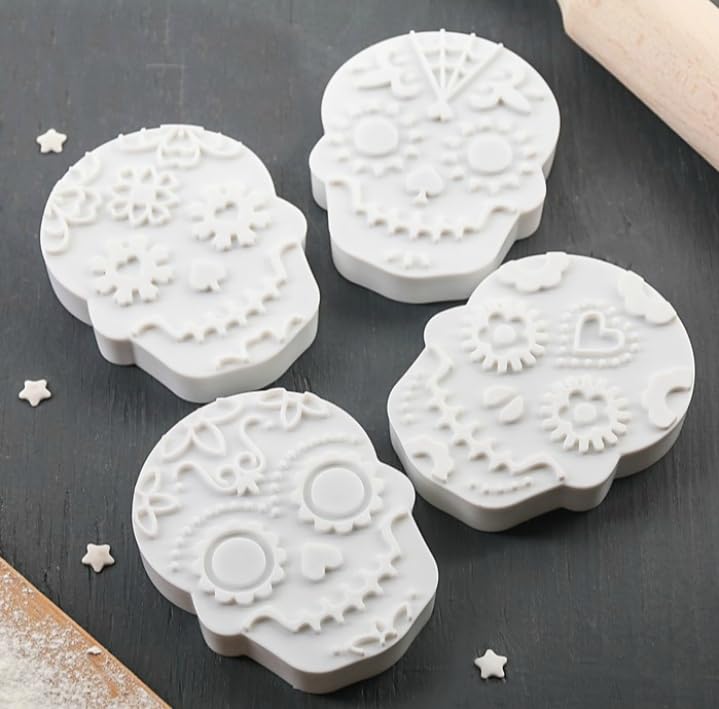 Generic - طقم قطاعات عجين لاحتفالات الهالوين بشكل جماجم منقوشة