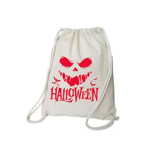 Generic - شنطة ظهر برباط للهالوين بتصميم جمجمة، شنطة قماشية بيضاء مع طباعة حمراء