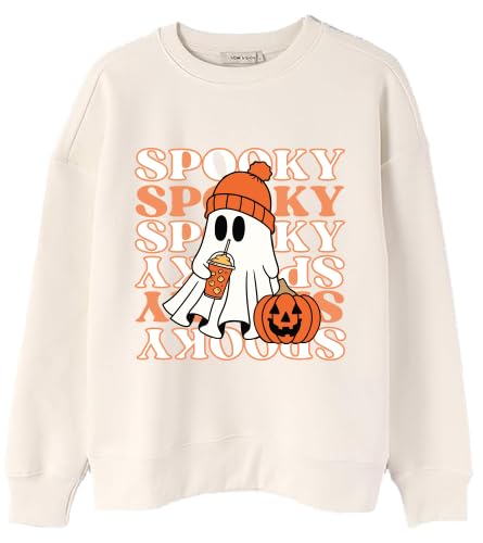 Generic - سويت شيرت هالوين جوست بيج من مزيج القطن، تصميم مخيف مع طباعة اليقطين وقبعة صغيرة، بلوفر كاجوال مقاس (L)