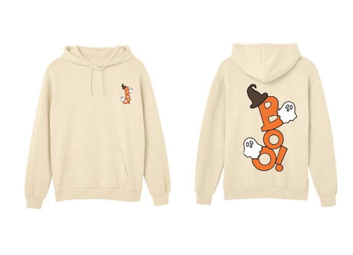 Generic - بلوفر بقلنسوة مطبوع عليه جوست بو للهالوين، مزيج قطن بيج، كم طويل (L)