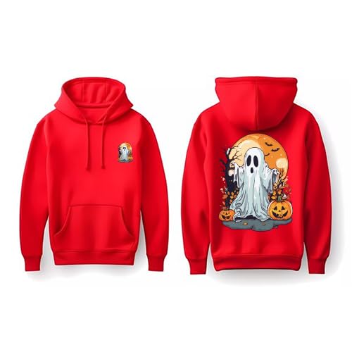 Generic - سويت شيرت بغطاء للرأس بطبعة شبح للهالوين، سويت شيرت قطن أحمر بتصميم يقطين، مقاس 2 اكس لارج