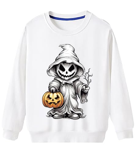 Generic - سويت شيرت ابيض بطبعة شبح للهالوين، باكمام طويلة بتصميم يقطين مقاس (3-6 سنوات)