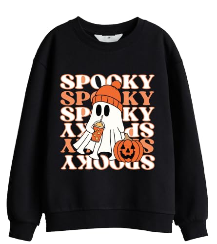 Generic - سويت شيرت بطبعة شبح هالوين مرعب، مزيج قطني وأكمام طويلة، أسود، مقاس M