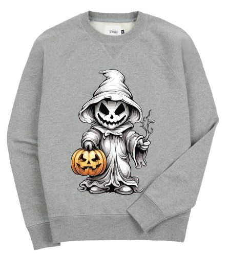 Generic - سويت شيرت بنمط شبح الهالوين، بلوفر من مزيج القطن الرمادي مع تصميم جرافيك يقطين، مقاس S
