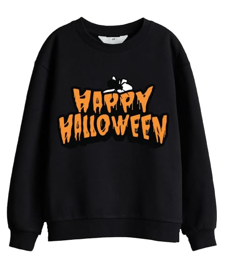 Generic - سويت شيرت اسود مطبوع عليه رسومات الهالوين من مزيج القطن البرتقالي مقاس (L)