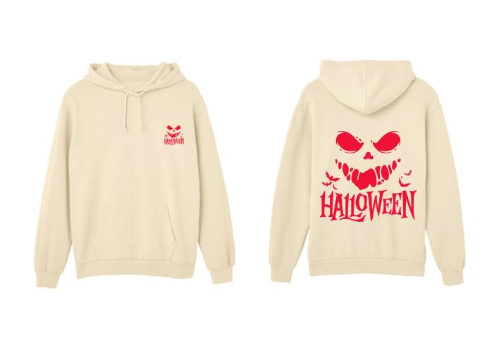Generic - سويت شيرت بغطاء للرأس بتصميم وجه مخيف للهالوين، سويت شيرت بلوفر قطني بيج (3-6 سنوات)