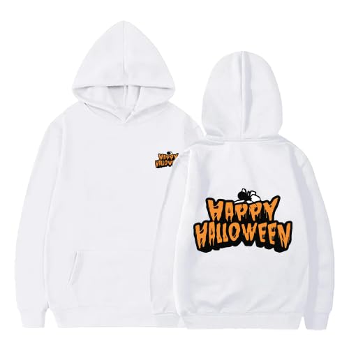 Generic - سويت شيرت بغطاء للرأس مطبوع عليه رسومات الهالوين، بلوفر قطني ابيض، كم طويل (XL)